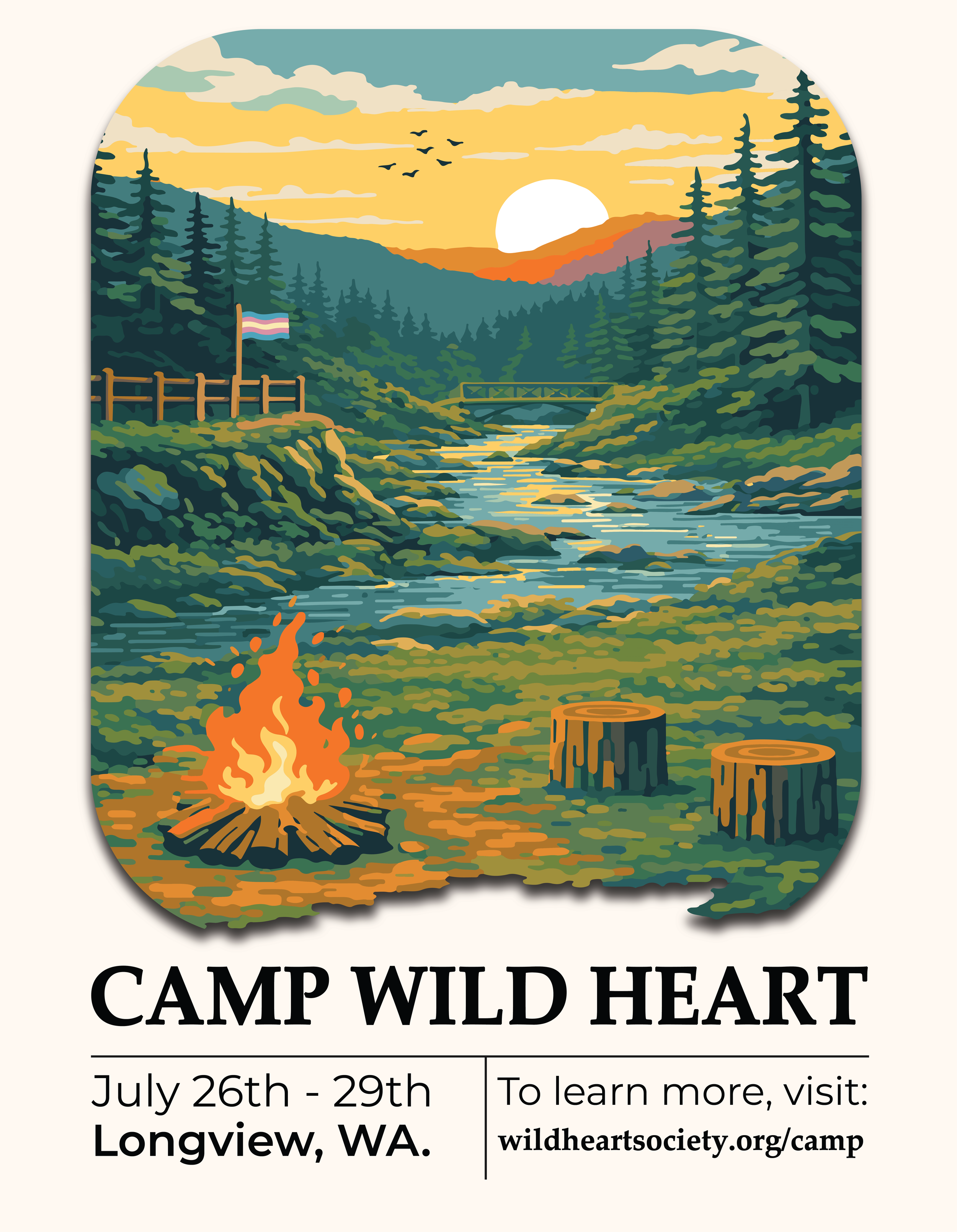 Camp Wild Heart is a summer retreat for trans youth—High schoolers and recent graduates of May or June of 2026—who want a space to grow, connect, and just be with people who get it. Camp is a blend of dedicated emotional deep-dives, structured workshops, and plentiful free-time—all set completely in nature.