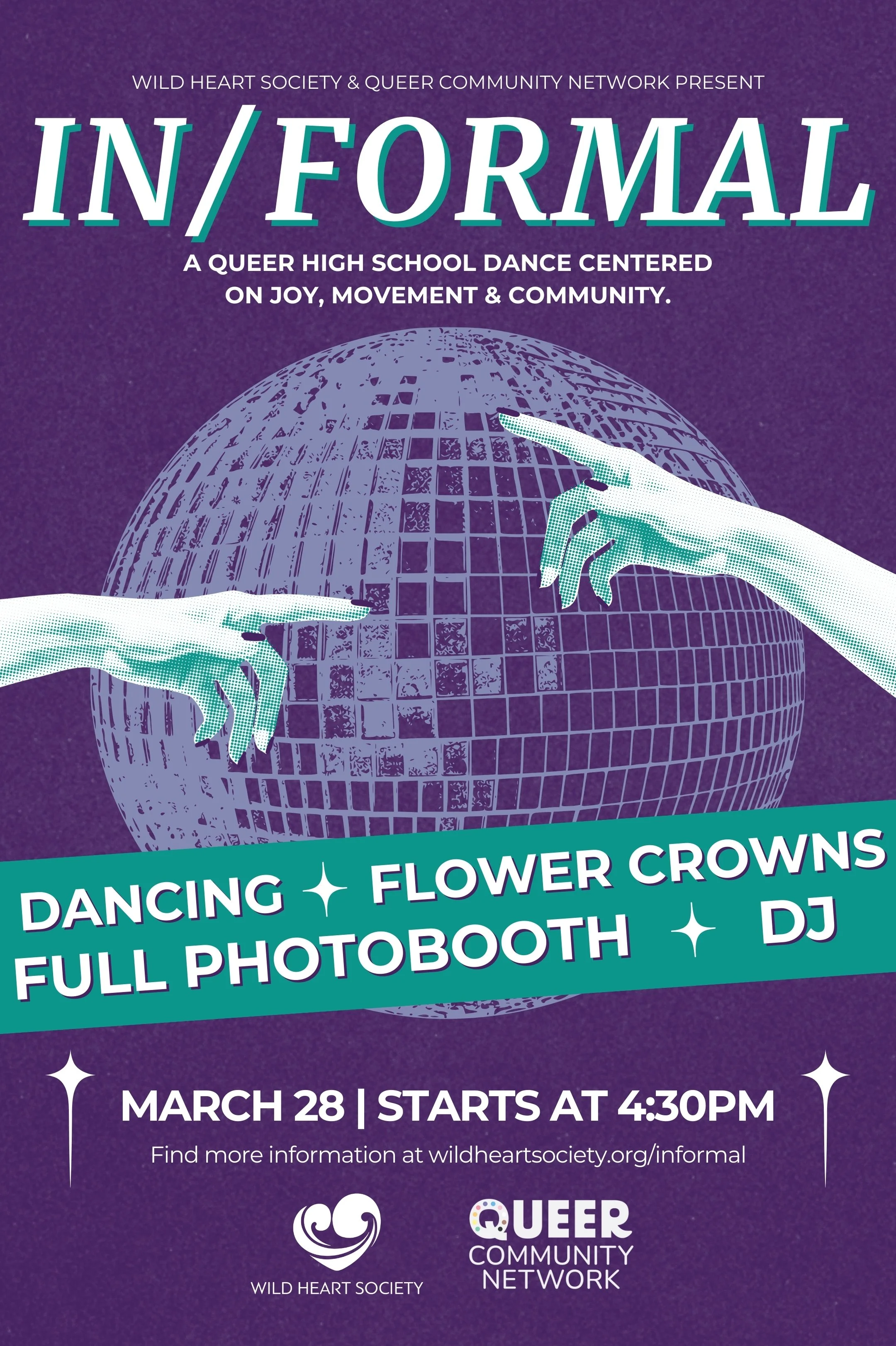 Join us for a queer high school youth dance designed to celebrate joy, embodiment, and community. No experience required, no pressure to perform — on the dance floor or in what you wear — and absolutely no one turned away for lack of funds, fits, or rhythm.